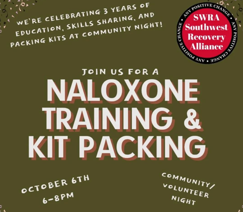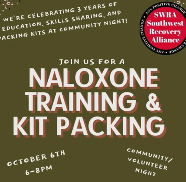 Southwest Recovery Alliance is holding a harm reduction training, kit packing, and community event on Mon., Oct. 6, 6-8 pm.