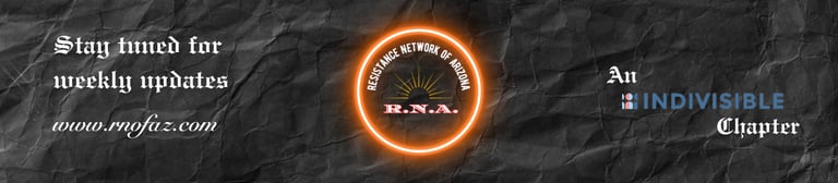 ☀️ The Resistance Network of Arizona is a grassroots coalition committed to building a more just, inclusive and liberated future. We organize around community outreach, mutual aid and direct action to raise public awareness and hold politicians accountable. We are a proud chapter of Indivisible.