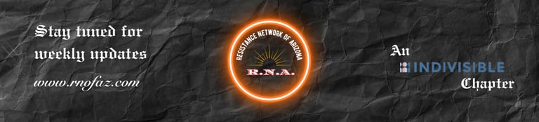☀️ The Resistance Network of Arizona is a grassroots coalition committed to building a more just, inclusive and liberated future. We organize around community outreach, mutual aid and direct action to raise public awareness and hold politicians accountable. We are a proud chapter of Indivisible.