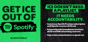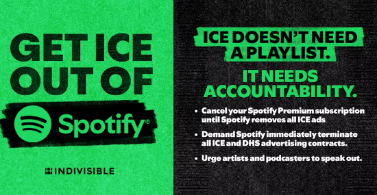 Stop streaming content on Spotify until ICE ads are removed.